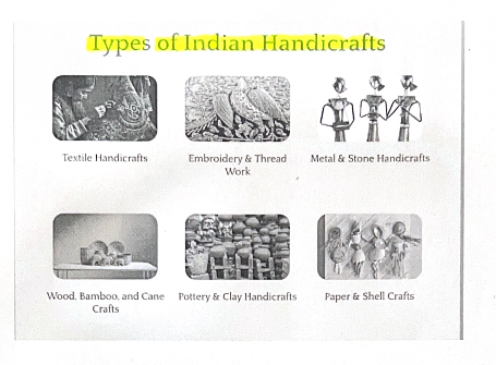 Handicrafts means handmade things. It means hand made things and in this generation hand made things were decreasing becauase of the machines.