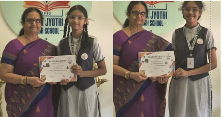 G Pranavi and M Deekshitha Sagar of Class 8 have demonstrated commendable dedication by completing 5 books this year. They have been awarded the Reader’s Quest – Champion Certificate, celebrating their strong reading habits and love for learning. πŸ“šβœ¨